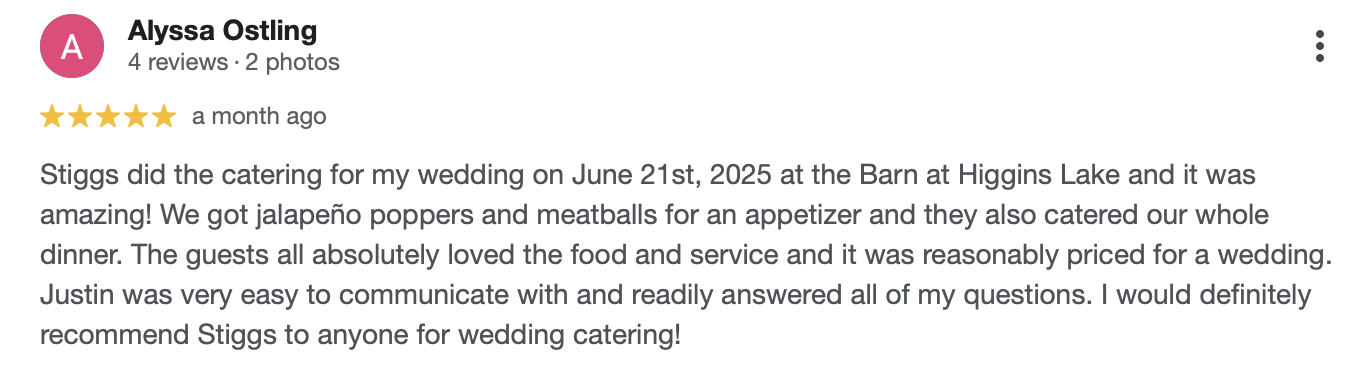 Looking for something to WOW your guests on your wedding day? We offer amazing buffet, family, and plated style service. See the “Wedding” module below.